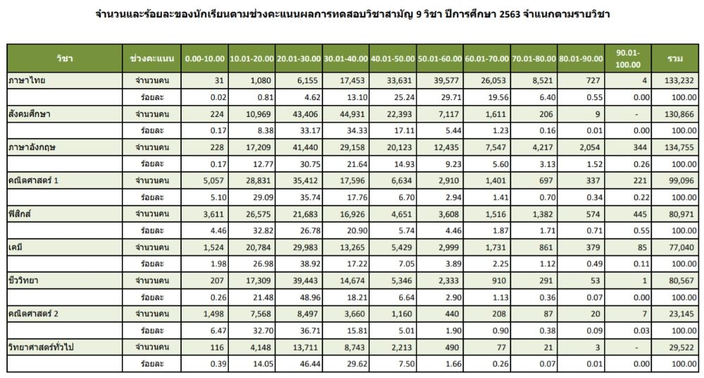 ตัวอย่างกระดาษคำตอบวิชาสามัญ 9 วิชา ภาษาไทย | สังคมศึกษา.