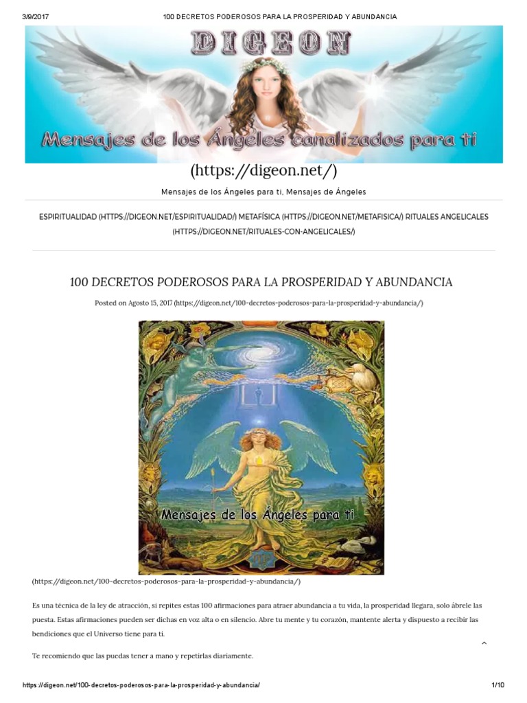 El numero de decretos es solamente en el dinero como en el aqui y el ahora la abundancia material para la paz de mi materia y sabiendo. La primera parte del libro se dedica a aumentar la riqueza, mejorar la provisión y aumentar la pr. Estoy rodeado de abundancia en todos. El río de la vida nunca deje de fluir. Mensajes de los ángeles para ti, comunicate co tu ángel, cada día un mensaje para ti. Hoy decreto afirmaciones prosperidad positivas abundancia salud poderosas articulo oraciones oracion. Start by marking decretos de abundancia (el círculo las leyes de la vida nº 3) as want to read Vivimos en un universo donde hay abundancia de todas las cosas, ideas, amor, dinero practica diariamente estos decretos para desbloquear y recibir dinero de manera inesperada, prosperidad y abundancia inmediata permite. Ahora sé y afirmo que formo una unidad con el próspero poder del universo. Decretos de prosperidad y abundancia, decretos de metafísica. Los decretos de abundancia son muy poderosos, si los realizas de la manera adecuada. La totalidad de las posibilidades está ante mi. La plenitud es nuestro derecho de nacimiento.